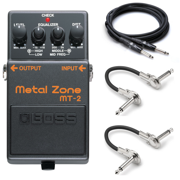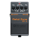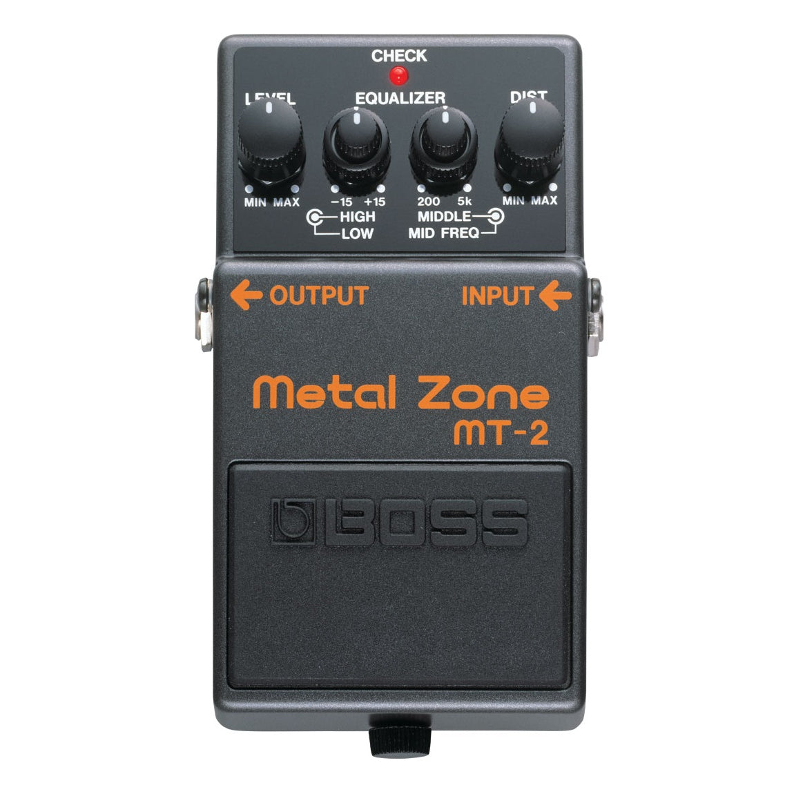 First released in 1991 and in continuous production ever since, the MT-2 Metal Zone is loved by guitarists everywhere for its thick, rich distortion and distinctive mid-focused character. Capable of producing a versatile range of heavy tones, the MT-2’s innovative dual-stage gain circuit has influenced legions of pedal designers through the years. Another standout feature is its groundbreaking three-band EQ with parametric midrange, which provides deep sound-shaping ability for covering numerous high-gain styles. The pedal was also one of the first BOSS compacts with dual-concentric knobs, offering expanded control without increasing size.
