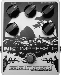 The NICOMPRESSOR (pronounced “Nigh Compressor”) offers distinctive tone shaping capabilities. It achieves exceptional compression dynamics while keeping higher-frequencies intact, making your guitar sound incredibly full and fat, without compromising your tone. In seeking to honor, improve, and expand this concept, Catalinbread developed a broader range of functionality and finely-tuned controls.