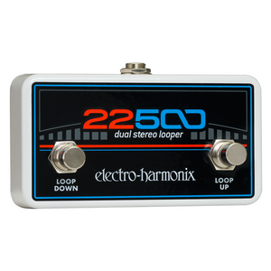 A wired remote control for the 22500 Dual Stereo Looper that gives you foot control over paging up and down thru the pedal’s Loop Banks.