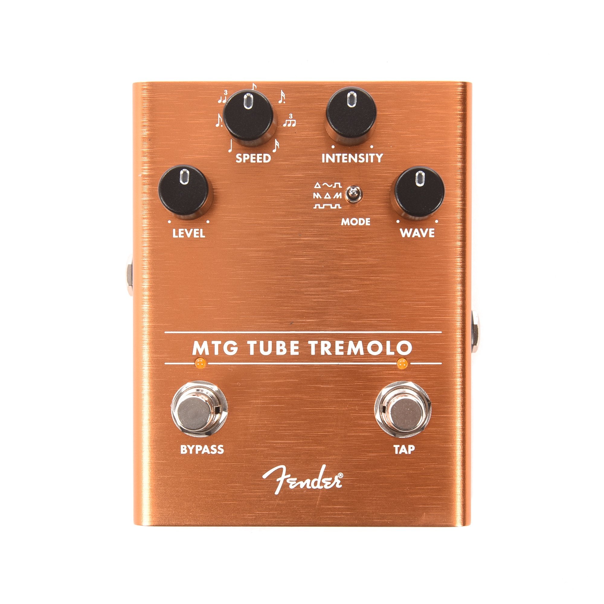 The name Fender is synonymous with real tube tone. The MTG Tube Tremolo brings the hypnotic sound typically found in vintage amps and conveniently places it into a stomp box based around a genuine, U.S. made NOS 6205 preamp tube. The pedal features Level, Intensity, and Speed controls, three oscillator wave shapes, and a dedicated tap tempo foot switch which allows access to various note subdivisions.