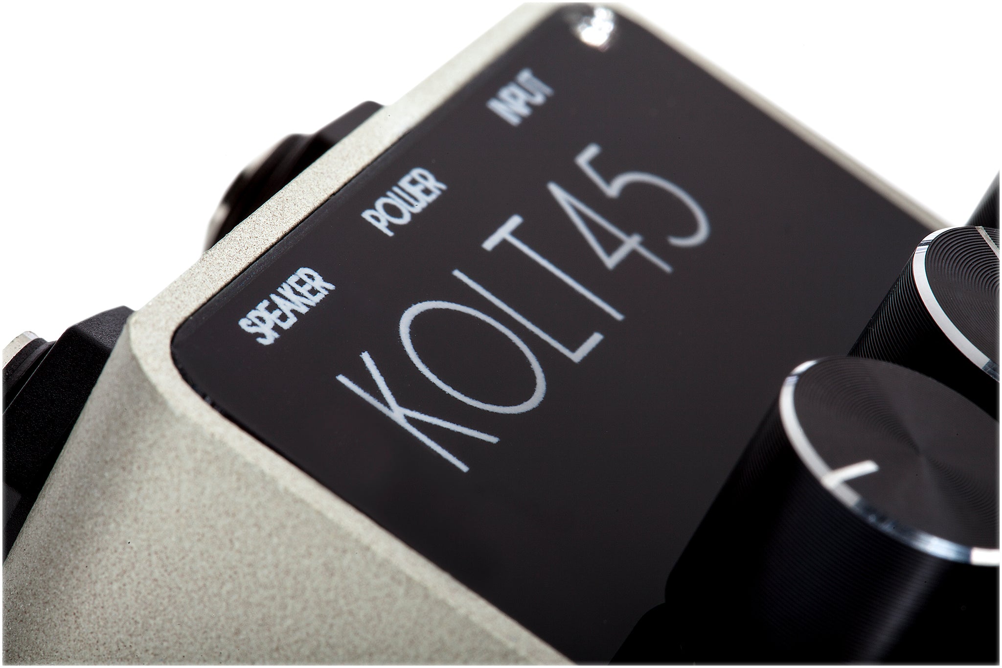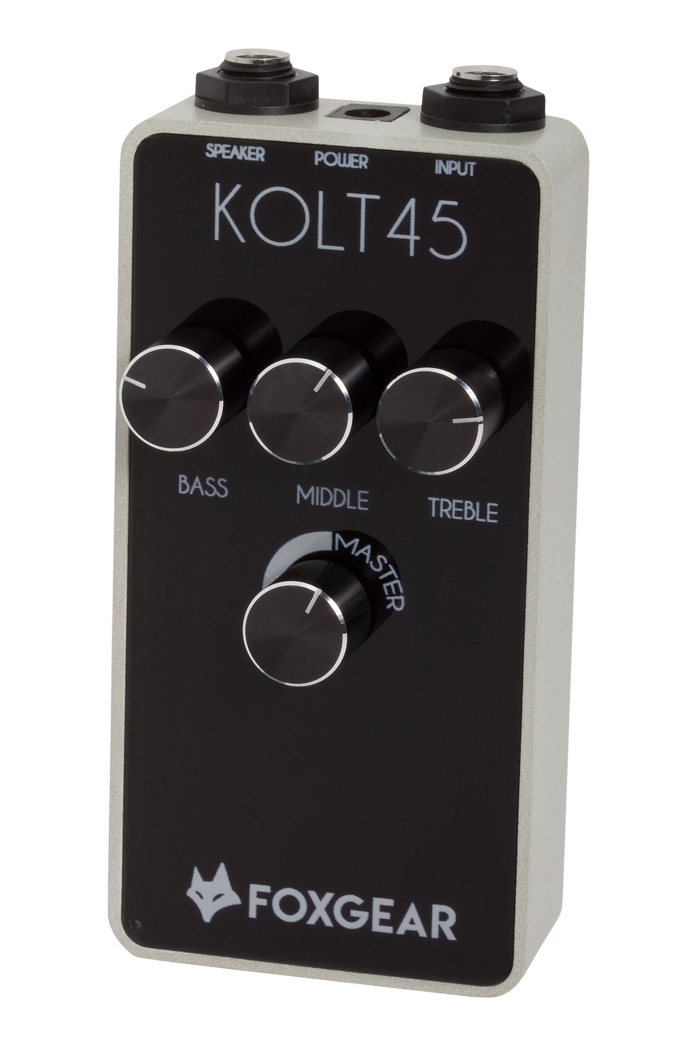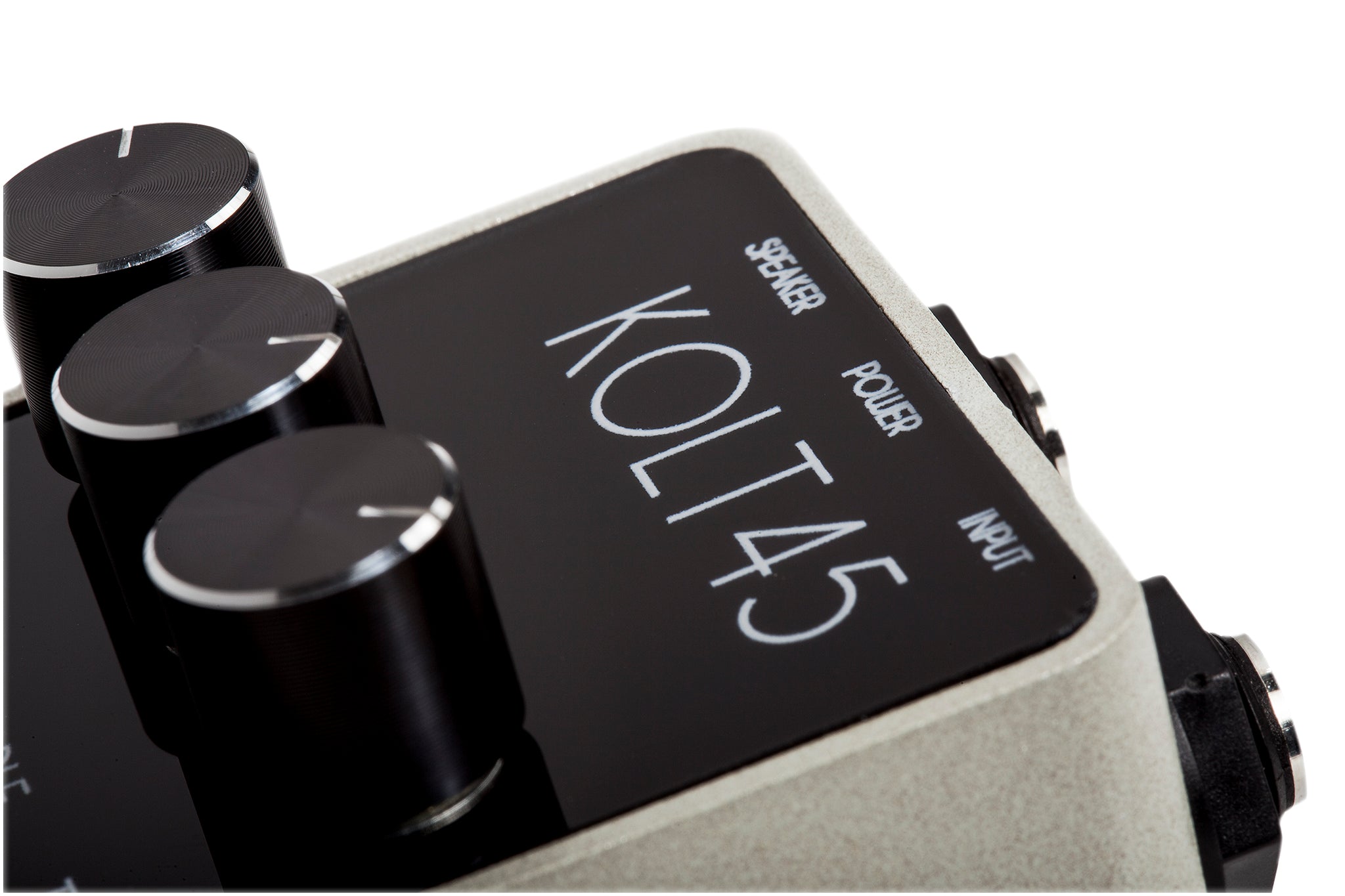 The Kolt45 is a powerful guitar amplifier in a highly portable, stomp box sized platform. The Kolt45 produces a real, 45W RMS into 4 Ohms with a responsive Treble, Middle, Bass tone stack and volume control all in a package that will fit into your jacket pocket.