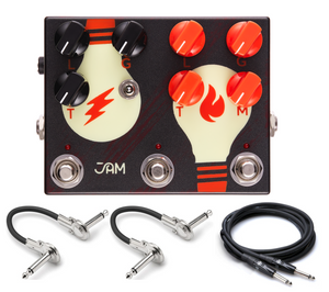 The Tubedreamer (Left Side) is JAM's take on the legendary 808 Tubescreamer with a carefully tuned midrange frequency register delivering a warm and rich overdriven sound through any amp! A pivotal difference between the TD and other Tubescreamers, is that they chose to go with 3 diodes for asymmetrical clipping instead of symmetrical, enhancing the responsiveness of the pedal to fretting and picking nuances. Made with carbon comp resistors, the TD employs the JRC4558D chip to deliver its classic sound, just like in the original, sought-after 808’s.