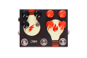 The Tubedreamer (Left Side) is JAM's take on the legendary 808 Tubescreamer with a carefully tuned midrange frequency register delivering a warm and rich overdriven sound through any amp! A pivotal difference between the TD and other Tubescreamers, is that they chose to go with 3 diodes for asymmetrical clipping instead of symmetrical, enhancing the responsiveness of the pedal to fretting and picking nuances. Made with carbon comp resistors, the TD employs the JRC4558D chip to deliver its classic sound, just like in the original, sought-after 808’s.