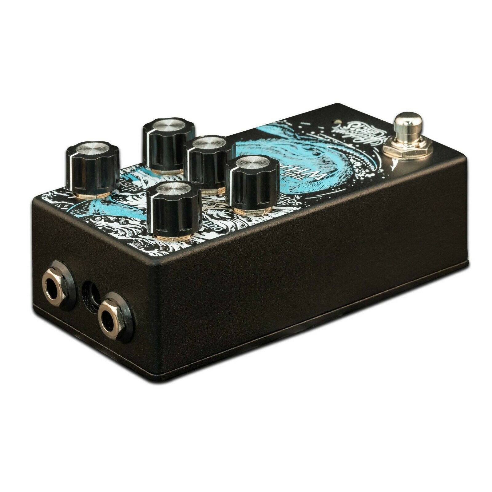 The Whaler V2 is an original fuzz pedal that takes your guitar from a Velcro monster of the depths, to a massive attacking beast of the sea. Built on a desire to find the elusive tone that is always taunting us, the Whaler V2 uses a truly original dynamic fuzz circuit that takes you from a pushed tube amp tone to fuzz hysteria. Dive into its deceptively simple controls for a deep wealth of tone unlike any other fuzz pedal. This new version has an added gain stage, substantially increasing The Whaler V2's range and depth of sound.