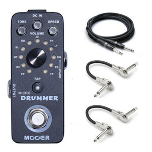 Micro drummer is a compact drum machine that slots right into your pedal chain. Sporting 121 drumbeats which span a wide variety of different musical styles and can be synced up to your desired time easily using the on-board tap tempo. Never miss a beat with MOOER micro DRUMMER!!!