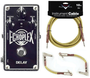 The Echoplex Delay also features tap tempo functionality, for up to 4 seconds of delay time, when you hook up an M199 MXR Tap Tempo Switch. The dry path is all analog with Constant Headroom Technology™—providing a full 20 volts of headroom—and a choice of true relay or trails bypass. The EP103 can be set for 100% wet mode along with stereo input and output modes. No tape cartridges required!