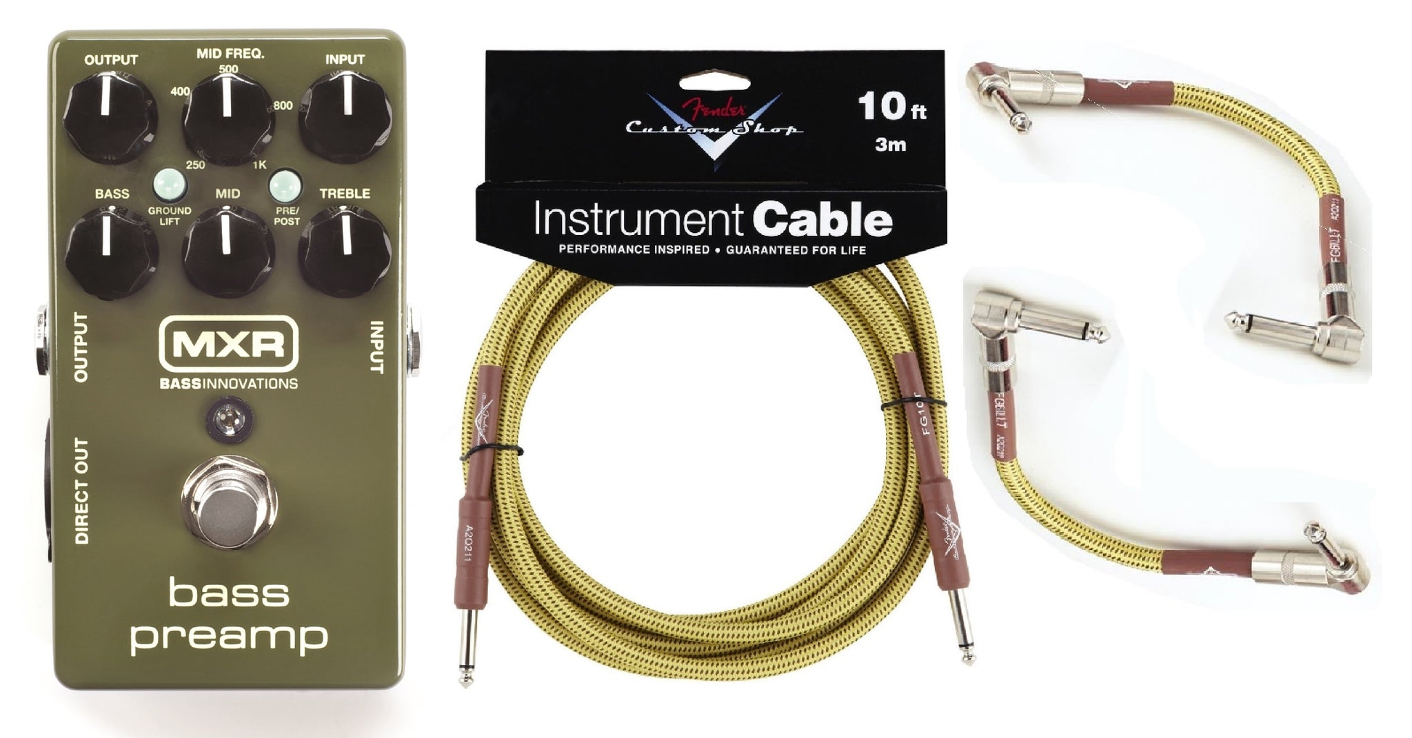 With your purchase you will receive Two New Fender Custom Shop Tweed 6 Inch Patch Cables and a New Fender Custom Shop Tweed 10 Foot Instrument Cable!