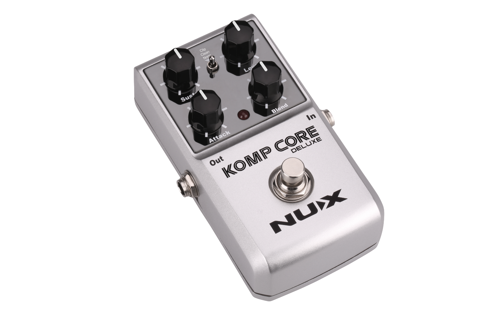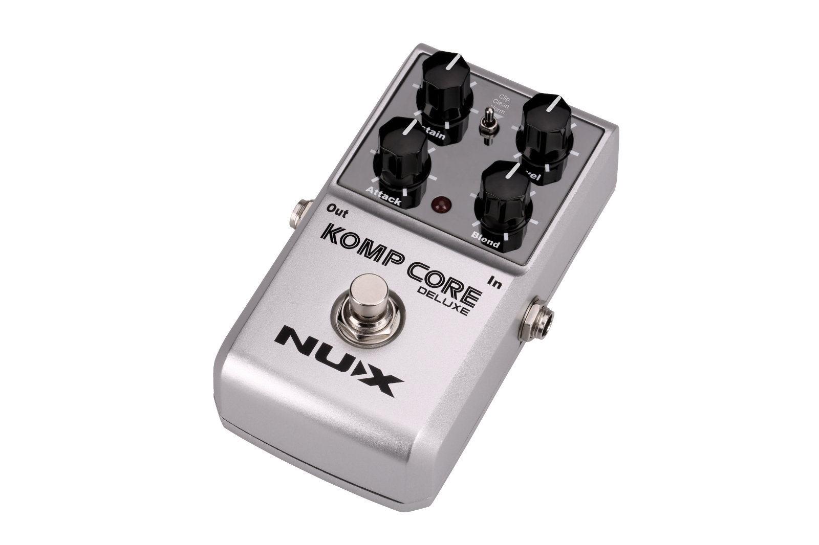Komp Core Deluxe is a multi-function analog compressor pedal featuring a wide variety of compressor tones. 3 different clip modes and precise knobs provide a wide range of taste. Sustain, Attack and Blend knobs allow you to have a good control perspective on signal and you can give a good sustain with low noise and adjust input sensitivity precisely.