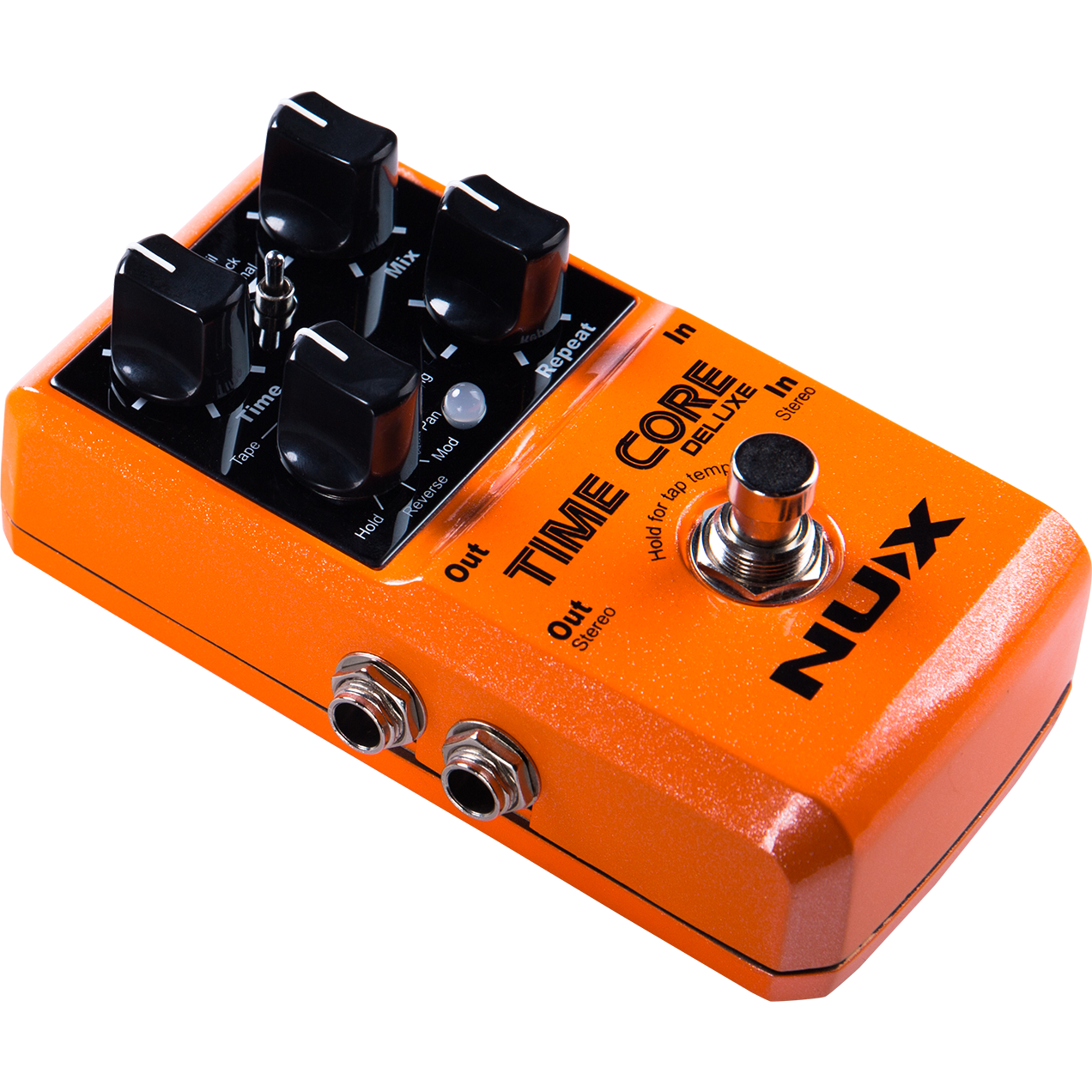 Time Core Deluxe comes with a 3-way toggle-switch allowing you to change between 2 Bypass modes and NUX’s unique Tone Lock (T-Lock) function.