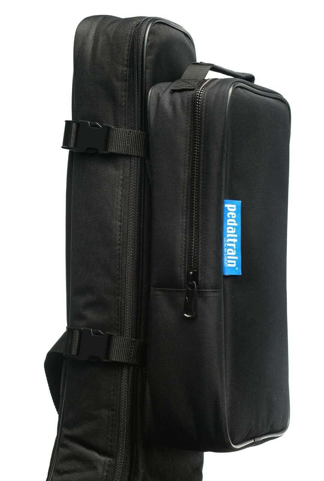 Included with purchase is our top-loading soft case with piggyback straps, and, as always, generous rolls of hook-and-loop. Soft case improvements introduce a metal zipper with a beefy pull tab and a sewn-in blue Pedaltrain logo tab.