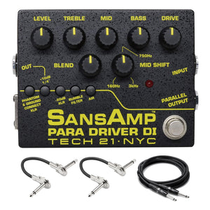 This floor version of Tech 21's RPM rackmount provides the same detailed tone shaping possibilities for any signal source. It is particularly useful with acoustic, electric and bass guitars, and upright bass, either direct to a mixing console or with an instrument amplifier. The Para Driver DI gives your instrument a natural warmth and presence, as if miking it through a tube pre-amp. The SansAmp circuitry eliminates the harsh, unnatural harmonics of piezo pickups, while the Drive control offers some tasteful edge — just a little or over-the-top.