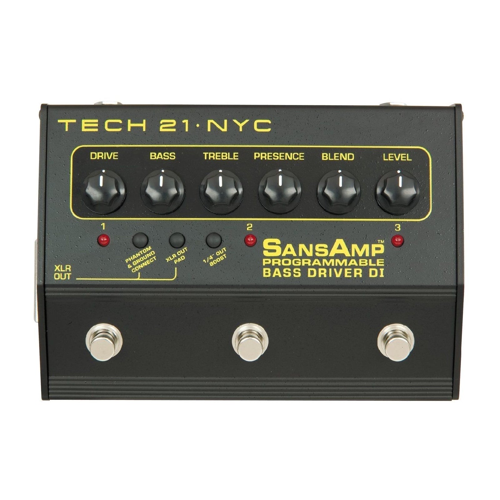 - While larger than other Tech 21 SansAmp pedals, the Programmable Bass Driver DI still fits into a gig bag. Actual size: 7.25”L x 5.25”W x 2.25”H.