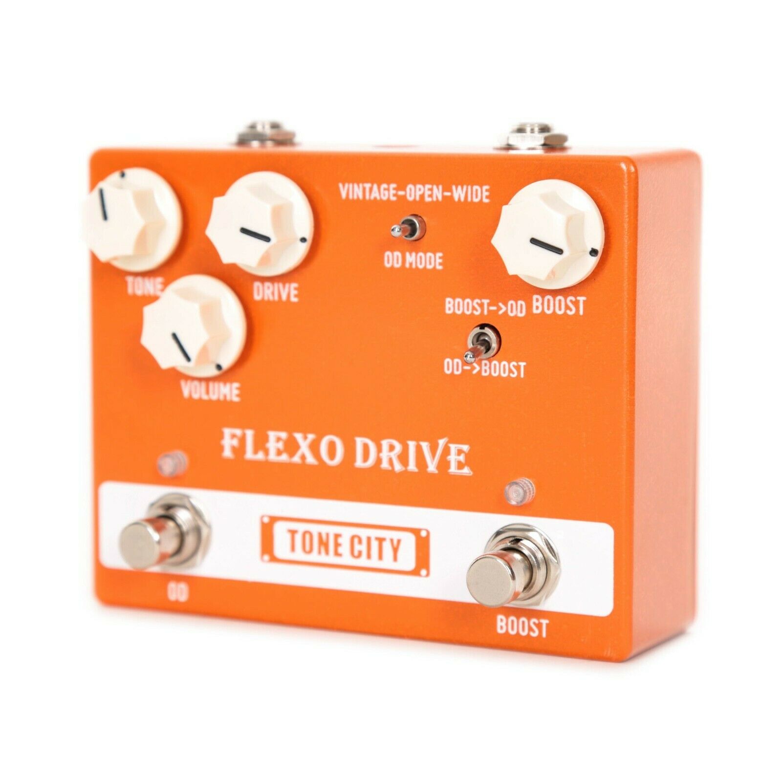 The Flexo drive is useable as either an independent boost or independent ovedrive with a separate footswitch for each but the real bonus is that you can stack the drive and boost however you like.