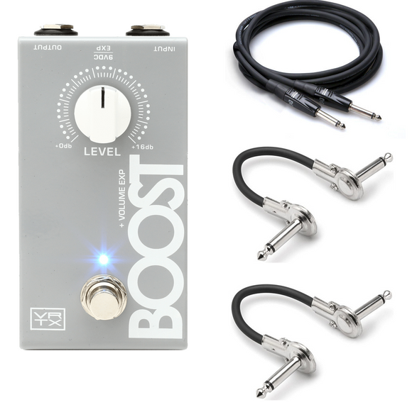 On the rear of the Boost MKII, you'll find a 1/8-inch TRS insert. This enables you to control your volume using an external treadle-style pedal. When the Boost MKII is bypassed, your external pedal will behave as a typical volume pedal, sweeping from zero to unity gain. Turn the Boost MKII on, and the treadle-style pedal will sweep from zero to wherever the stompbox's Level knob is set. You connect the treadle-style pedal to the Boost MKII via a 1/8-inch TRS to 1/4-inch TRS (stereo) cable or a 1/8-inch TRS to dual 1/4-inch TS ("Y" insert) cable (sold separately). Best of all, your guitar's signal is completely isolated from the treadle-style pedal, ensuring zero impact on your tone.