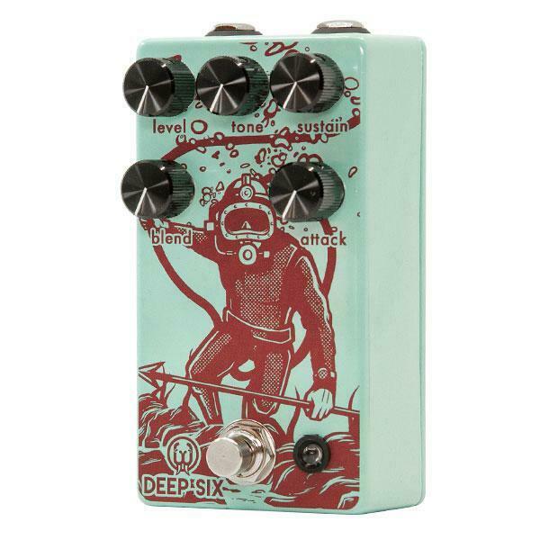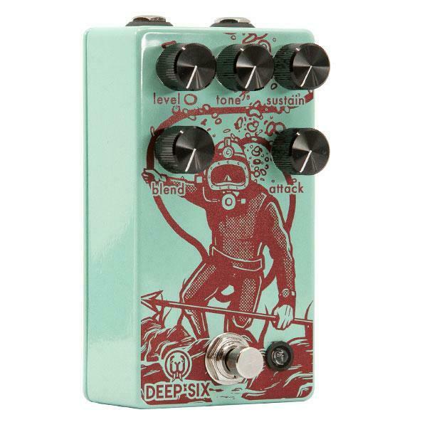The Deep Six is a true bypass studio-grade compressor in stomp box form, inspired by the performance of the Universal Audio 1176 with the simplicity of the Ross and Dynacomp. Offering a Level, Sustain, Attack, and Blend control, the Deep Six will give you unmatched versatility at a price you can afford.