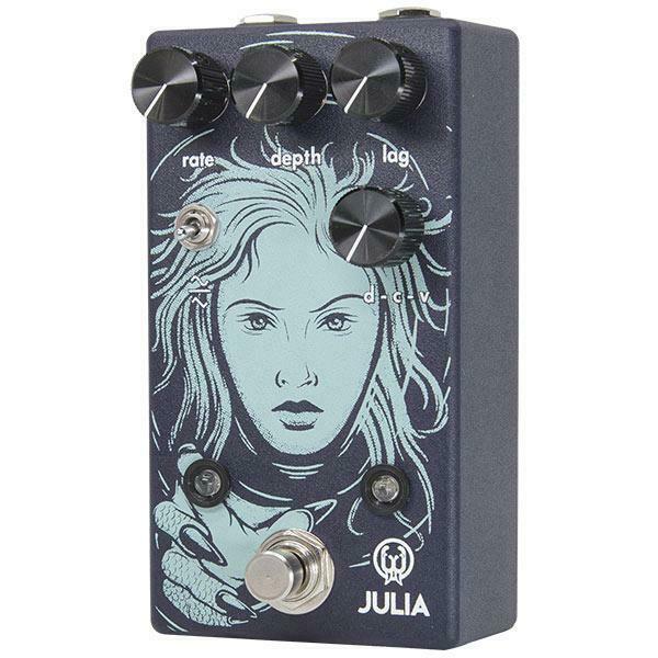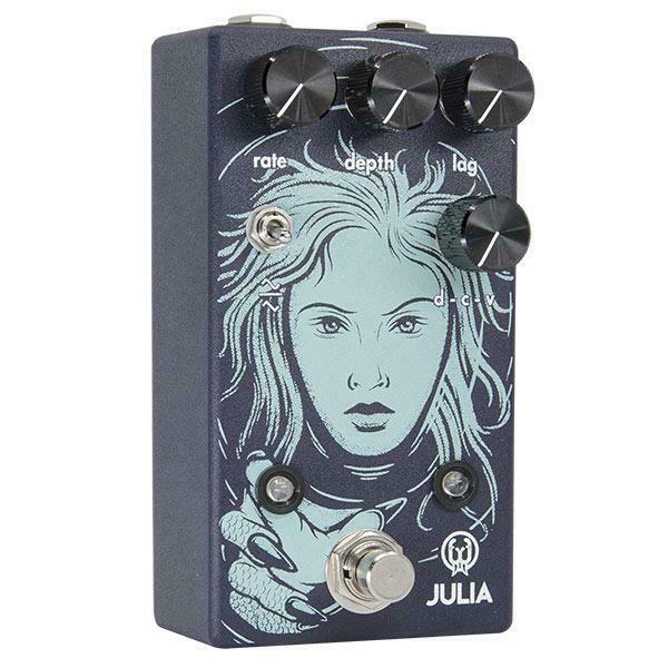 The Julia is a fully analog, feature-rich chorus/vibrato packed with a wide array of tonal landscapes begging to be explored. Updated for 2020, Julia now has top mounted jacks, soft switch bypassing and updated art from Adam Forster.