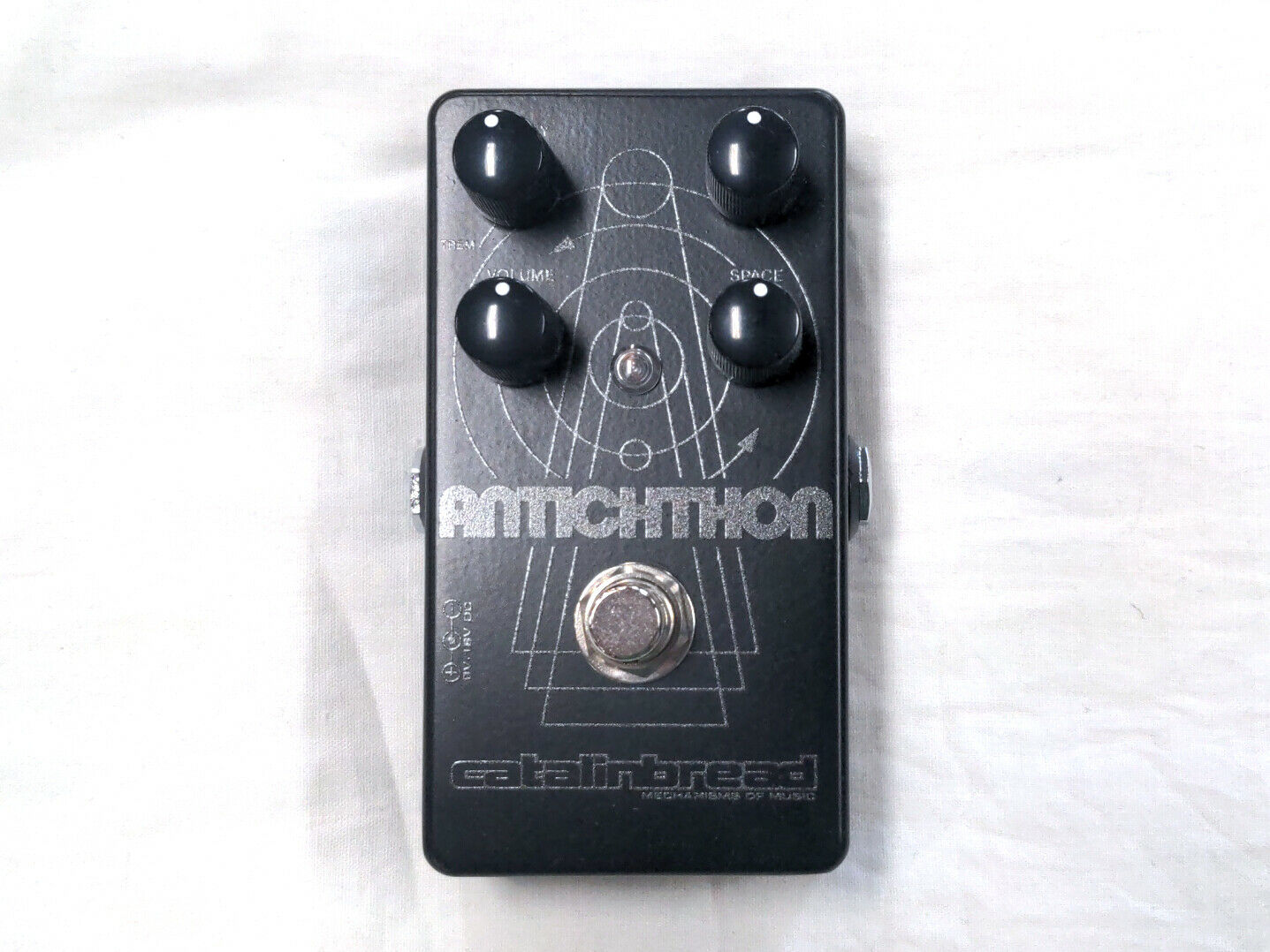 Welcome to the Catalinbread Antichthon, where nothing behaves as you expect it to. Where your guitar’s volume knob suddenly becomes a way to dial in strange new vistas of sound. Where your guitar’s volume knob makes things speed up or slow down, as your guitar pulsates like some strange new quasar. Where huge chords, laden with harmonics, give way to undulating tremblings.