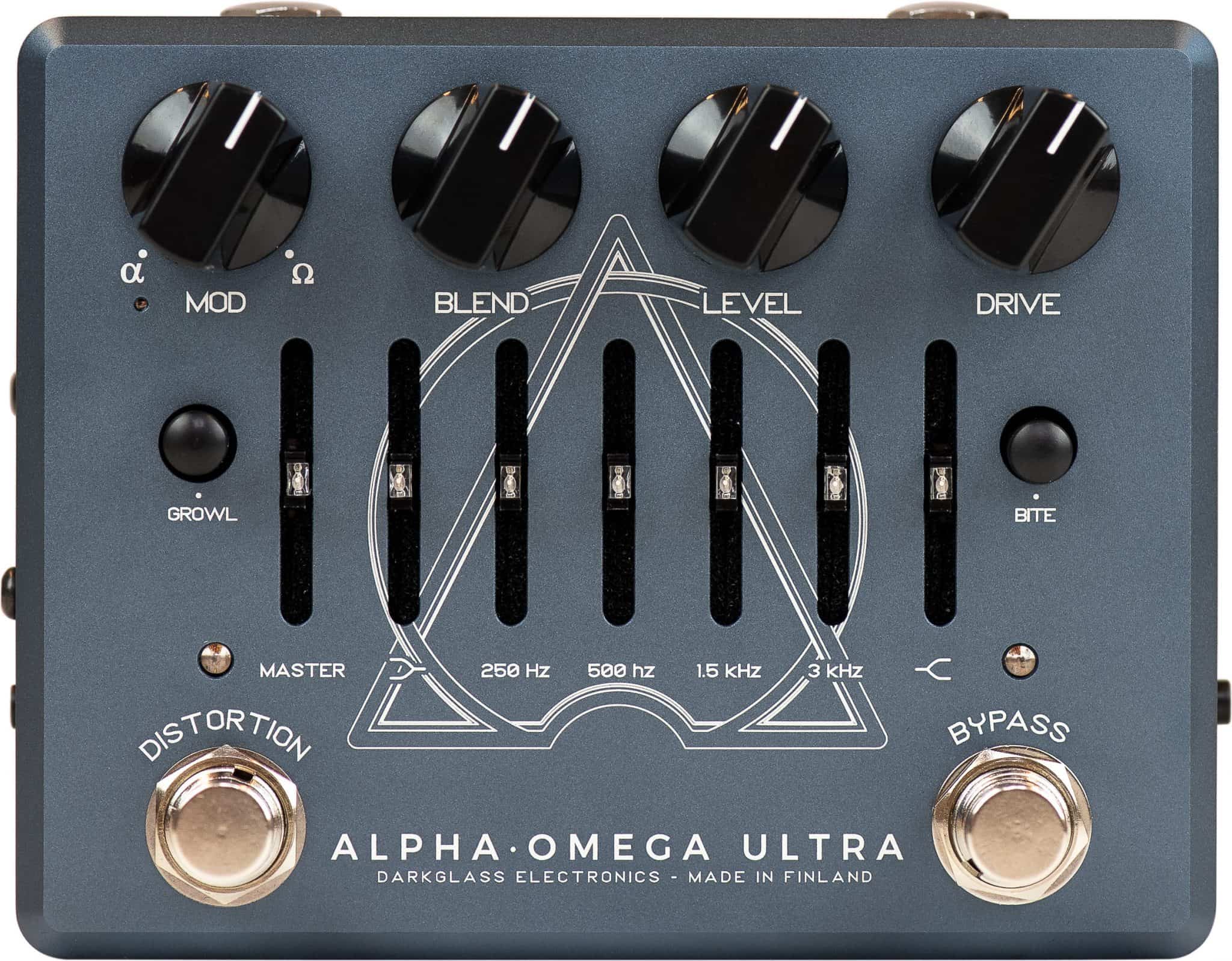 Selects or mixes between the two distinct distortion circuits: Alpha is punchy, tight with a lot of definition, whereas Omega is simply brutal and raw. On the Darkglass Suite you can assign footswitch control of the Mod to toggle between Alpha and Omega.