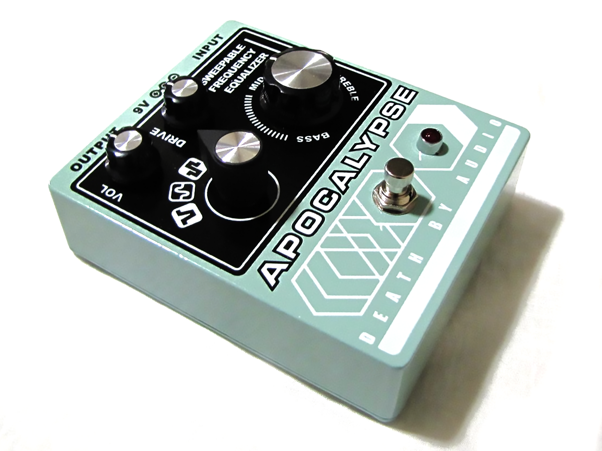 The Apocalypse is our jack-of-all trades fuzz pedal. After being dramatically overdriven, the signal is routed to a selectable post-amplifier. The user can toggle through its five signal paths and choose their desired apocalyptic sound. To further refine it, control the sweepabale frequency equalizer and design your tone to your liking.