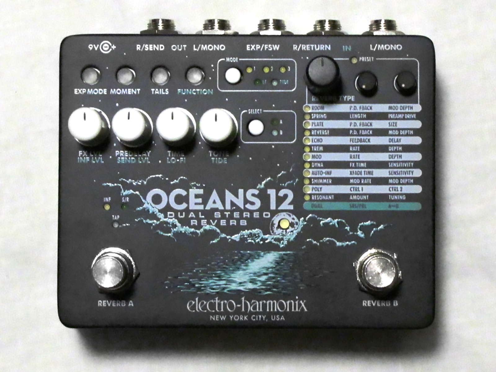 Used Electro-Harmonix EHX Oceans 12 Dual Stereo Reverb Guitar Effects Pedal
