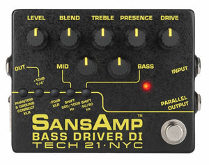 Much more than just a direct box, the SansAmp Bass Driver DI is capable of dialing up big vintage tube tones, bright modern slap sounds, gnarly distortions, and all in between. Three different outputs to drive power amps, recording desks, PA mixers, or simply enhance your current rig. Controls include Presence for definition and upper harmonic content; Blend to combine the proportion of direct signal and SansAmp circuitry; and active EQ specifically tuned for bass with 12dB of cut or boost.